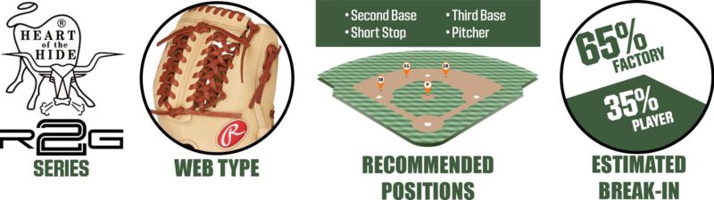 Made with the same traditional Heart of the Hide® leather to ensure the same level of premium craftsmanship and durability you expect, the Rawlings® R2G Series Gloves feature an additional 25% factory break-in to get you as close to game-ready performance as possible. Great for infielders, pitchers, and even utility players, this 11.75’’ model is crafted with a Modified Trap-Eze Web and Rawlings®’ versatile 200-pattern to confidently secure the ball when swallowing up driven liners and ground balls.